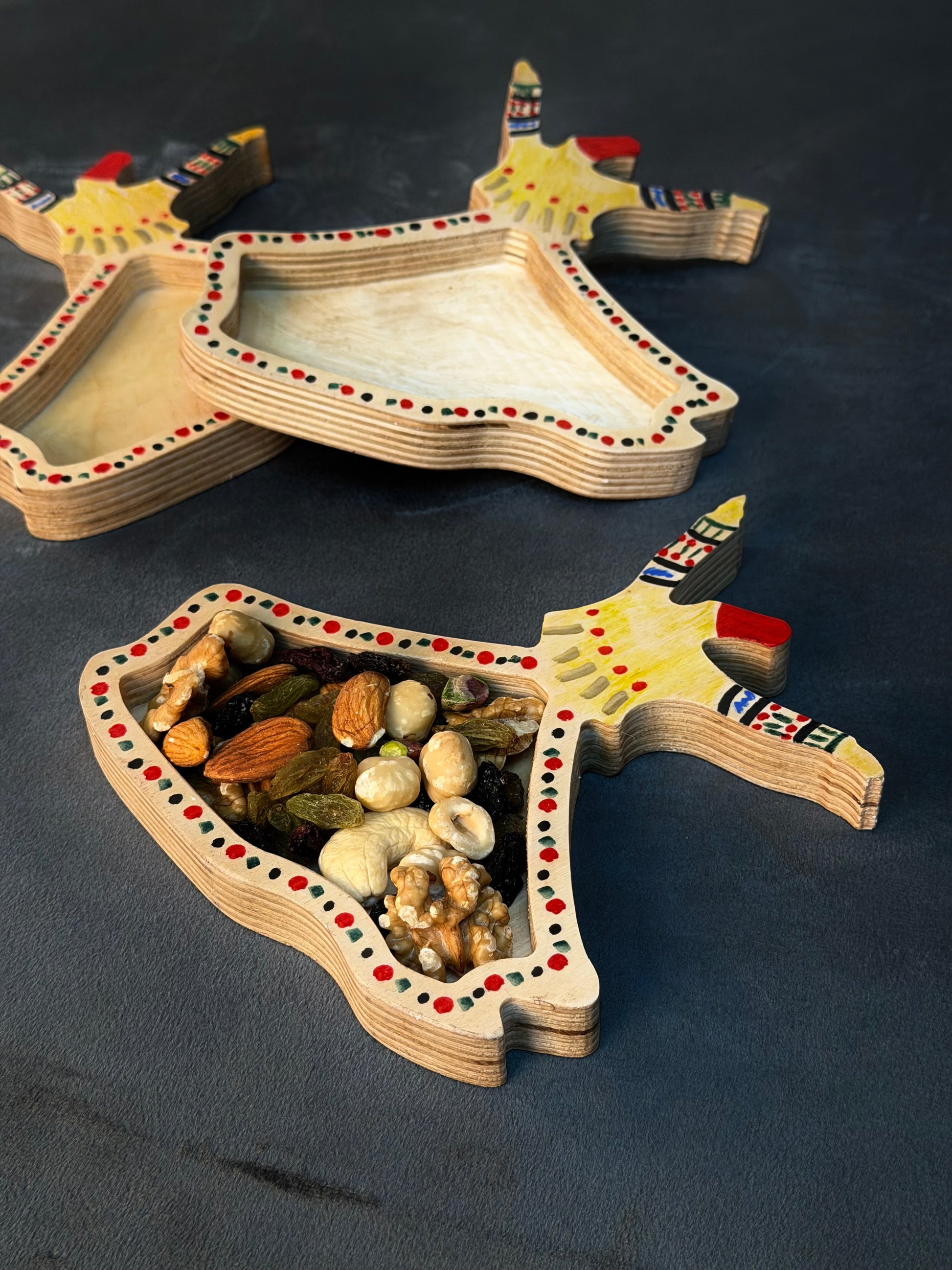 Add a touch of heritage to your table with these Sufi-inspired snack plates. Crafted from wood .These are perfect for individual servings of nuts, sweets, or appetizers.