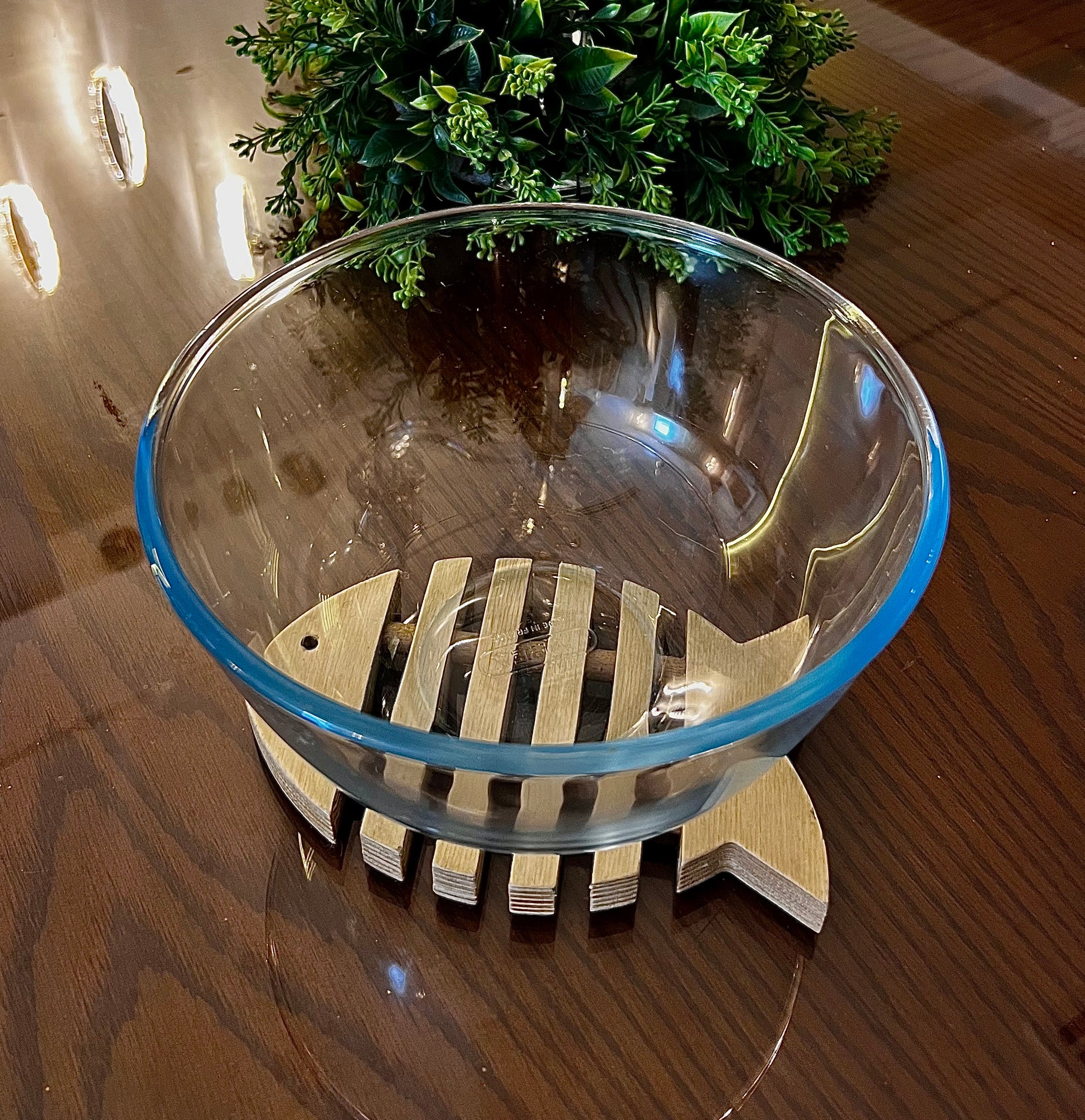 This fish-shaped wooden trivet is the perfect catch for handling hot pots and pans. Made from natural wood with a playful design, it keeps your surfaces safe while adding a splash of personality to your kitchen or dining space.